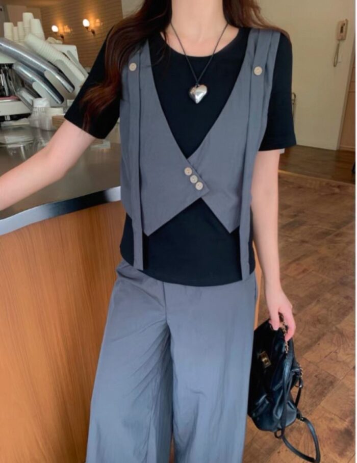 假兩件上衣闊腿褲兩件套