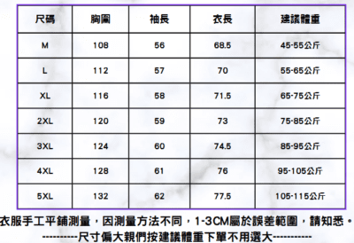 M(適合45-55KG) ,L(適合55-65KG) ,XL(適合65-75KG) ,2XL(適合75-85KG) ,3XL(適合85-95KG) ,4XL(適合95-105KG) ,5XL(適合105-115KG) |