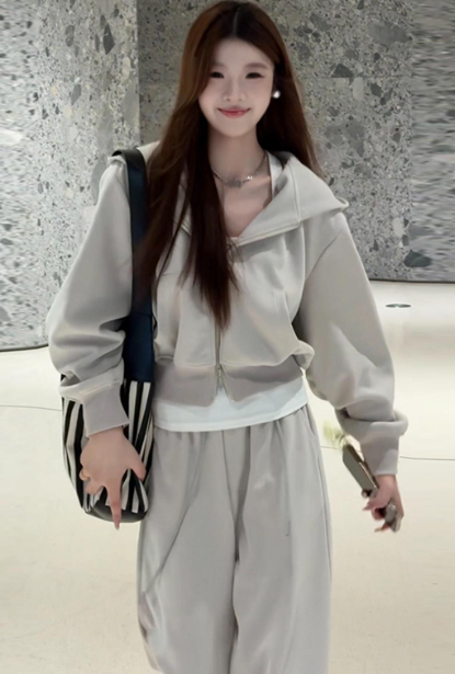 休閒連帽衛衣闊腿褲兩件套