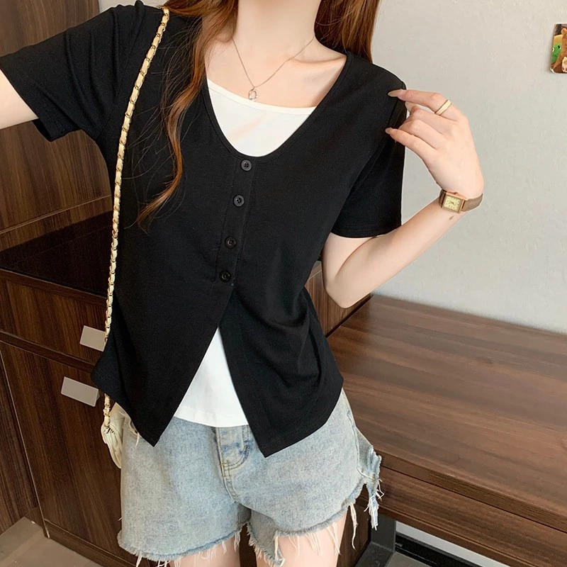 假兩件修身氣質短T