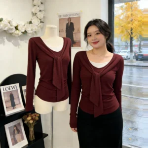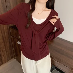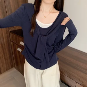 假兩件拼接不對稱長袖T