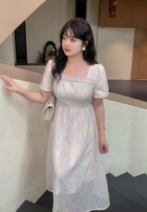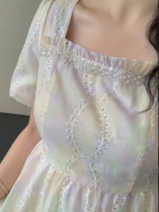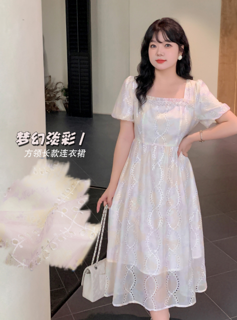 📍刺繡方領夢幻帶鉆連衣裙