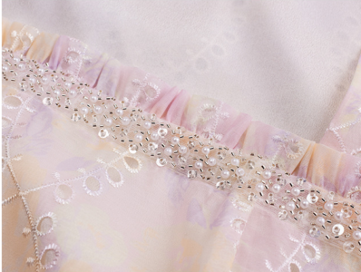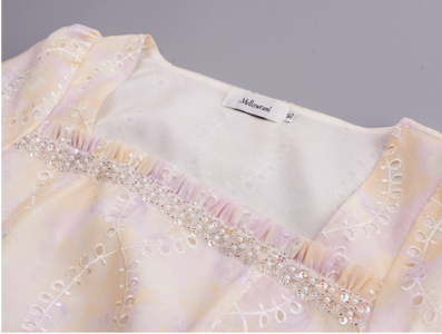 刺繡方領夢幻帶鉆連衣裙