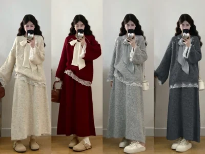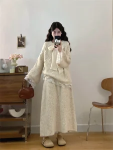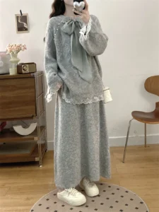 📍加厚針織蝴蝶結毛衣兩件套