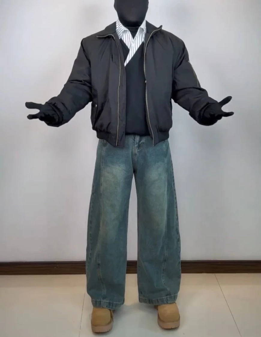 📍加絨做舊水洗直筒彎刀褲