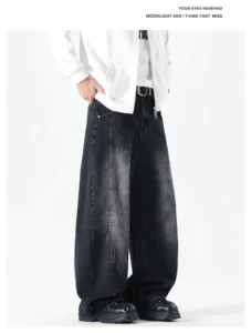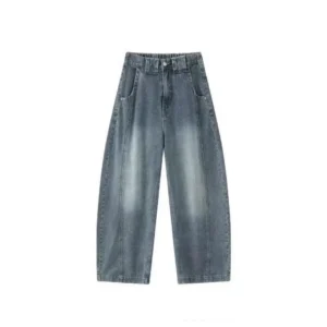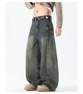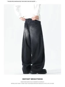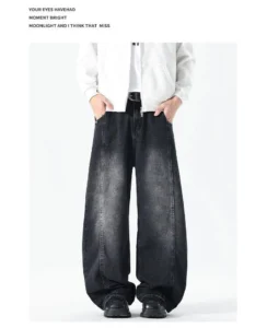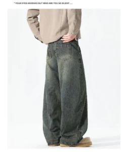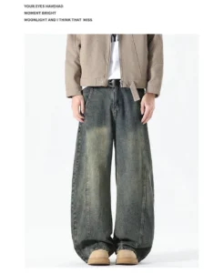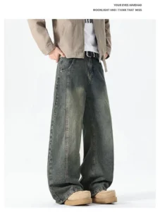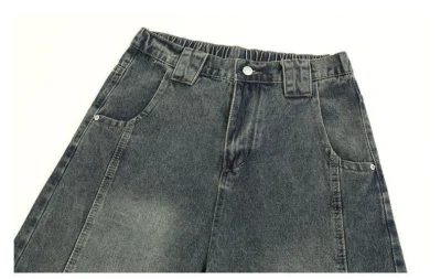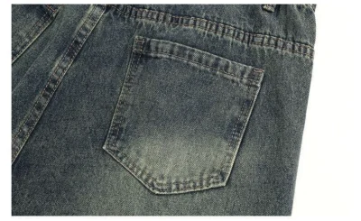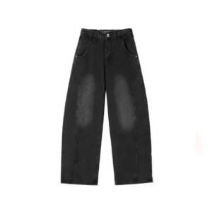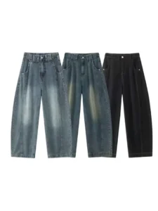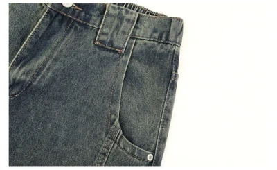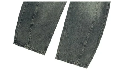 加絨做舊水洗直筒彎刀褲