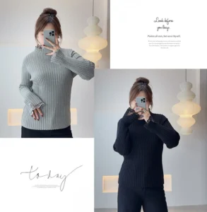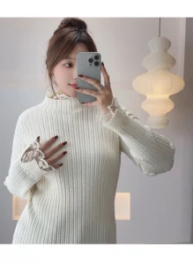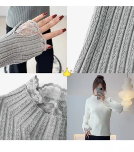 📍半高領蕾絲邊打底毛衣