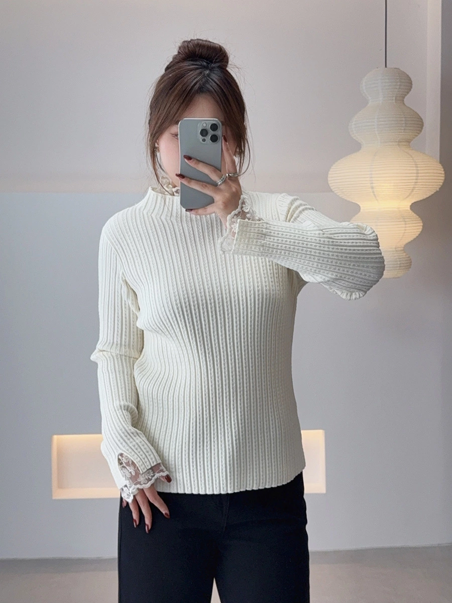 📍半高領蕾絲邊打底毛衣