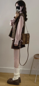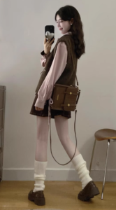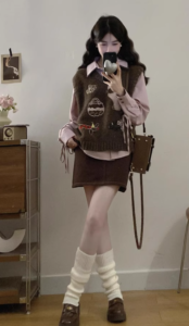 📍學院風針織馬甲高腰短裙三件套