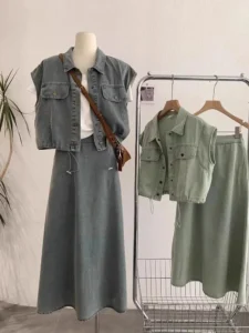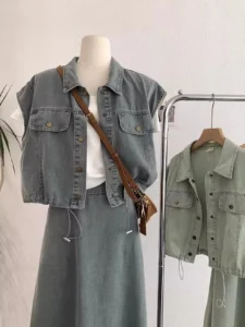 📍復古時尚寬鬆襯衫牛仔兩件套