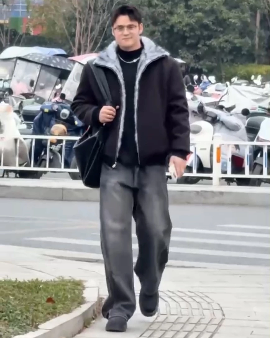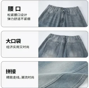 📍復古水洗拼接彎刀牛仔褲