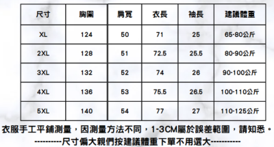 XL(適合65-80KG) ,2XL(適合80-90KG) ,3XL(適合90-100KG) ,4XL(適合100-110KG) ,5XL(適合110-125KG) |
