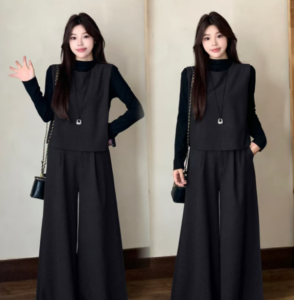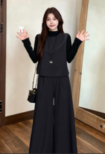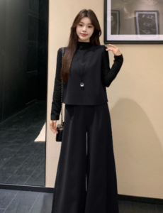 文藝氣質馬甲+闊腿褲