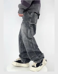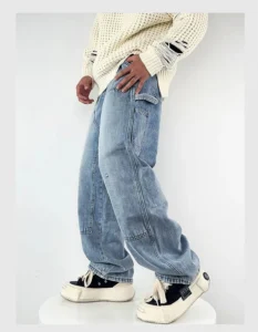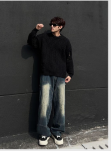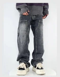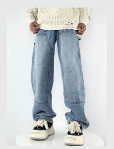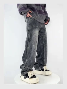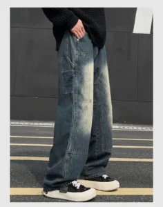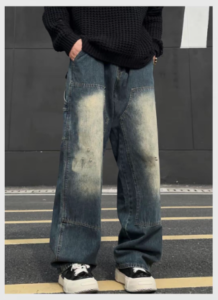 📍水洗做舊拼接直筒寬鬆牛仔褲