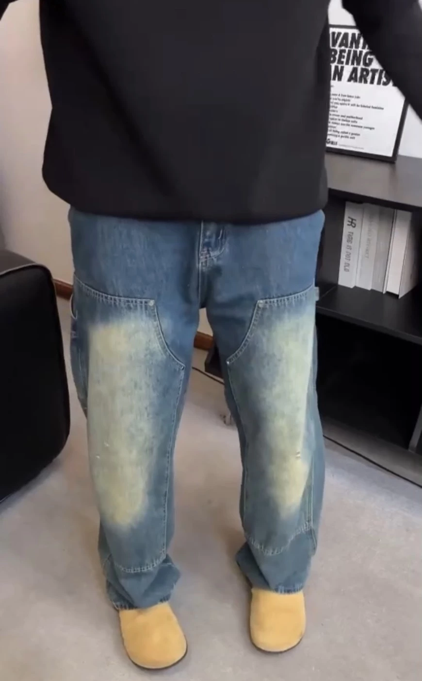 📍水洗做舊拼接直筒寬鬆牛仔褲
