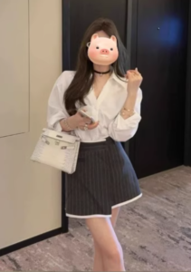 📍法式假兩件蕾絲襯衫套裝