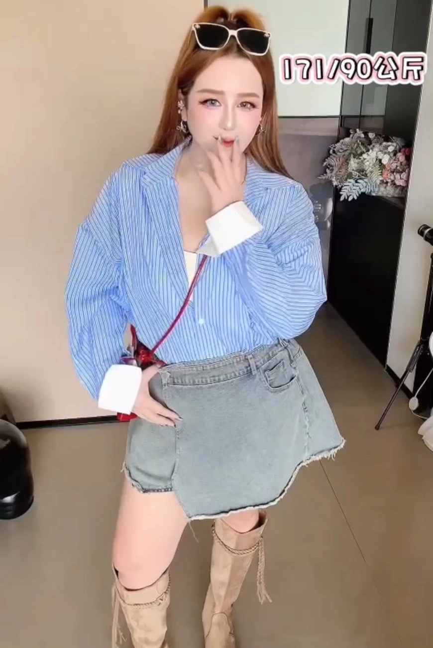 📍編號657 : 條紋襯衫高腰短褲兩件套