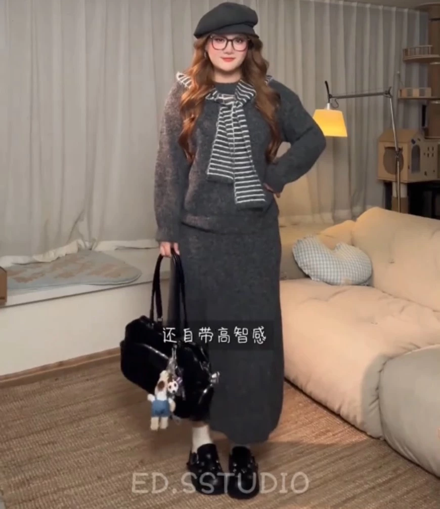 📍編號695: 慵懶條紋披肩針織毛衣三件套