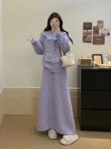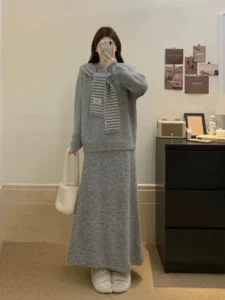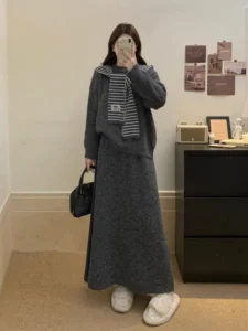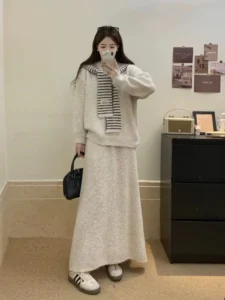 編號695: 慵懶條紋披肩針織毛衣三件套