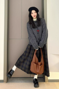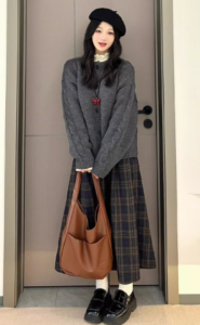 📍編號698 : 文藝毛衣外套半身裙三件套