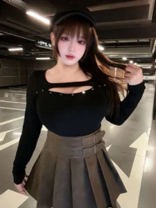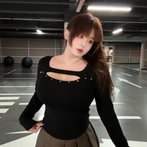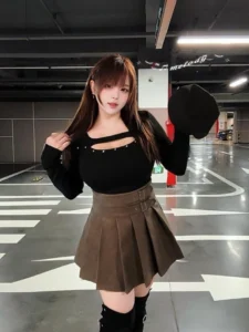 📍編號720 : 鉚釘鏤空加絨高腰半身裙套裝