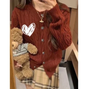 編號729 : 麻花刺繡毛衣格紋辦裙套裝