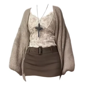 📍編號740 : 蕾絲吊帶毛衣半身裙套裝