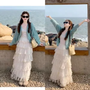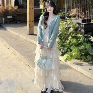📍編號779: 毛衣開衫蕾絲吊帶蛋糕裙套裝