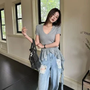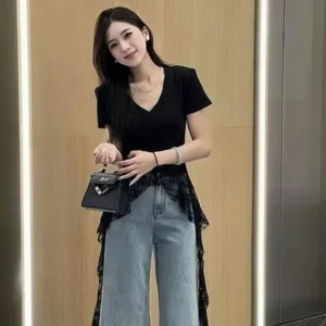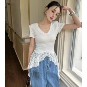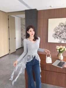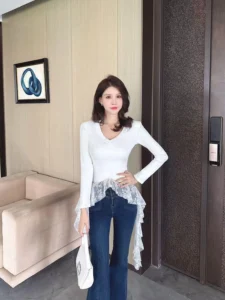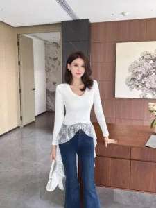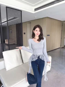 📍編號792:蕾絲拼接V領飄帶打底衣