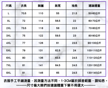 📍尺碼: L-8XL