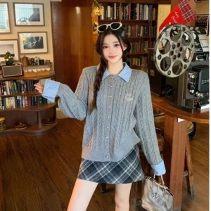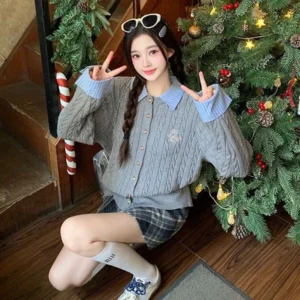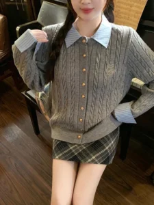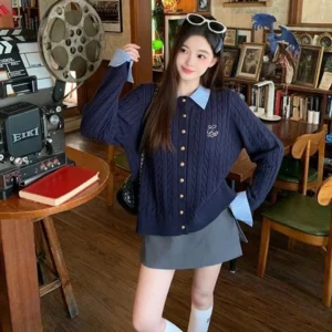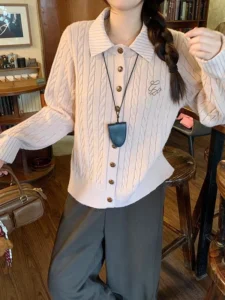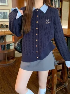 📍翻領拼接麻花針織毛衣