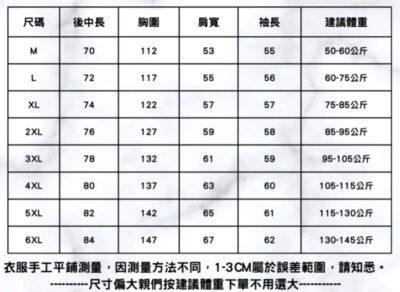 📍尺碼: M-6XL