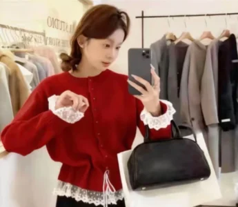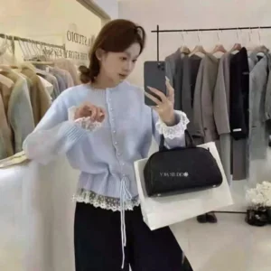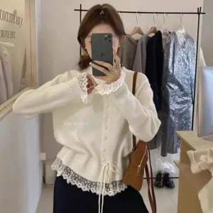 📍蕾絲假兩件加厚收腰針織開衫