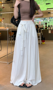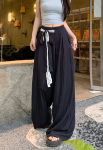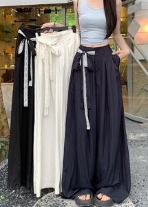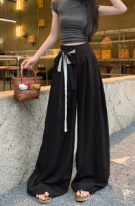 📍蕾絲飄帶高腰垂感拖地休閒褲