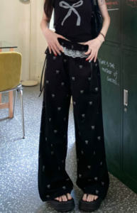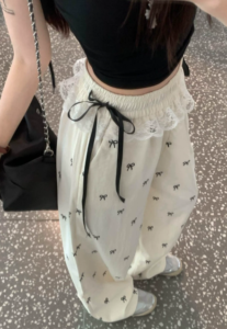 📍蝴蝶結蕾絲休閒闊腿褲