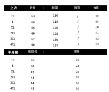 L(適合50-60KG) ,XL(適合60-67KG) ,2XL(適合68-75KG) ,3XL(適合75-85KG) ,4XL(適合85-95KG) |