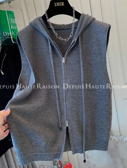 📍連帽拉鍊針織馬甲背心寬鬆外套