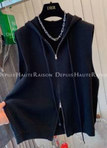 連帽拉鍊針織馬甲背心寬鬆外套