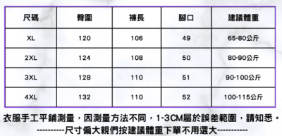 XL(適合65-80KG) ,2XL(適合80-90KG) ,3XL(適合90-100KG) ,4XL(適合100-115KG) |