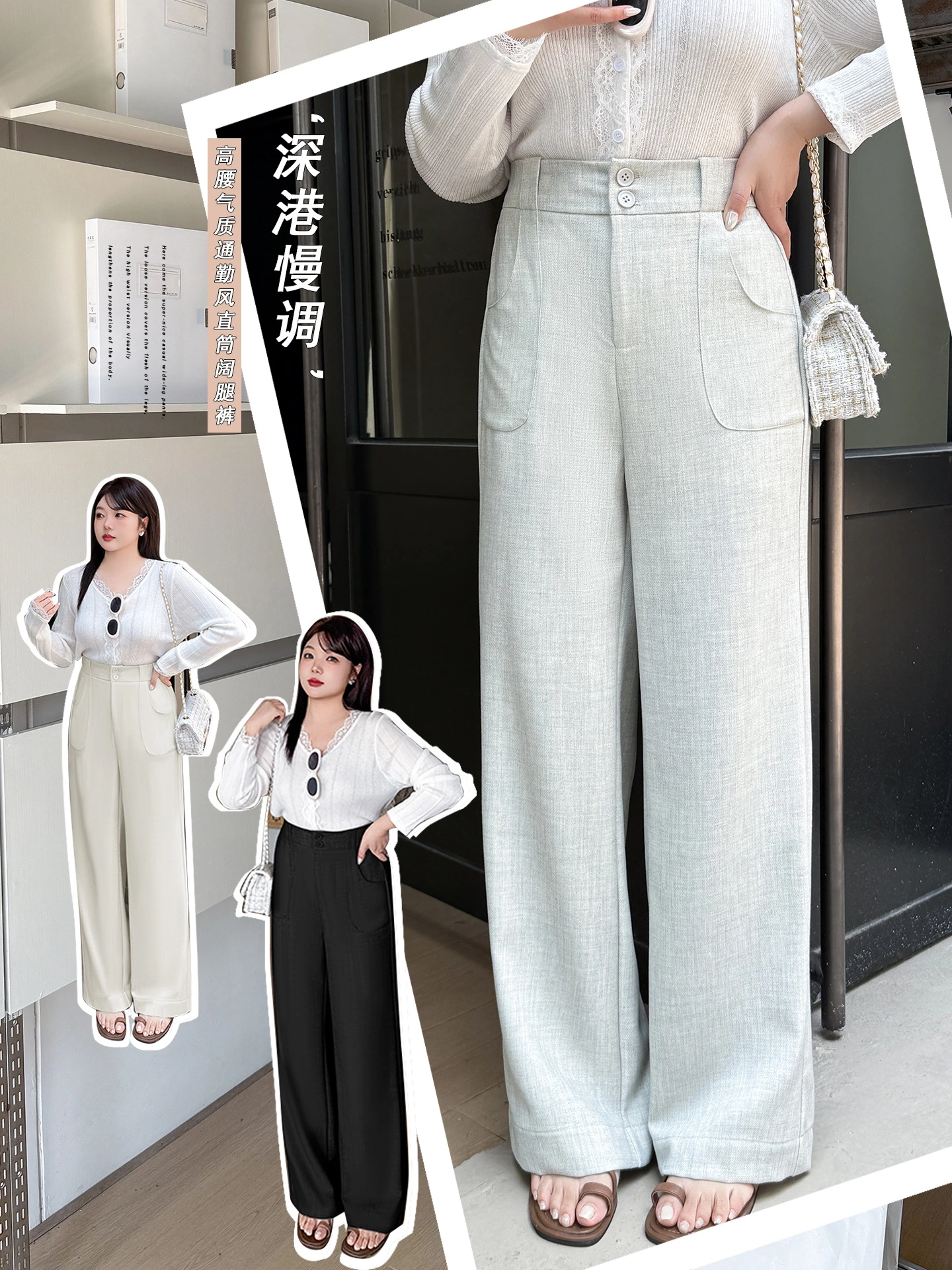 📍高腰垂感直筒西裝闊腿褲