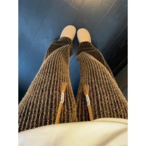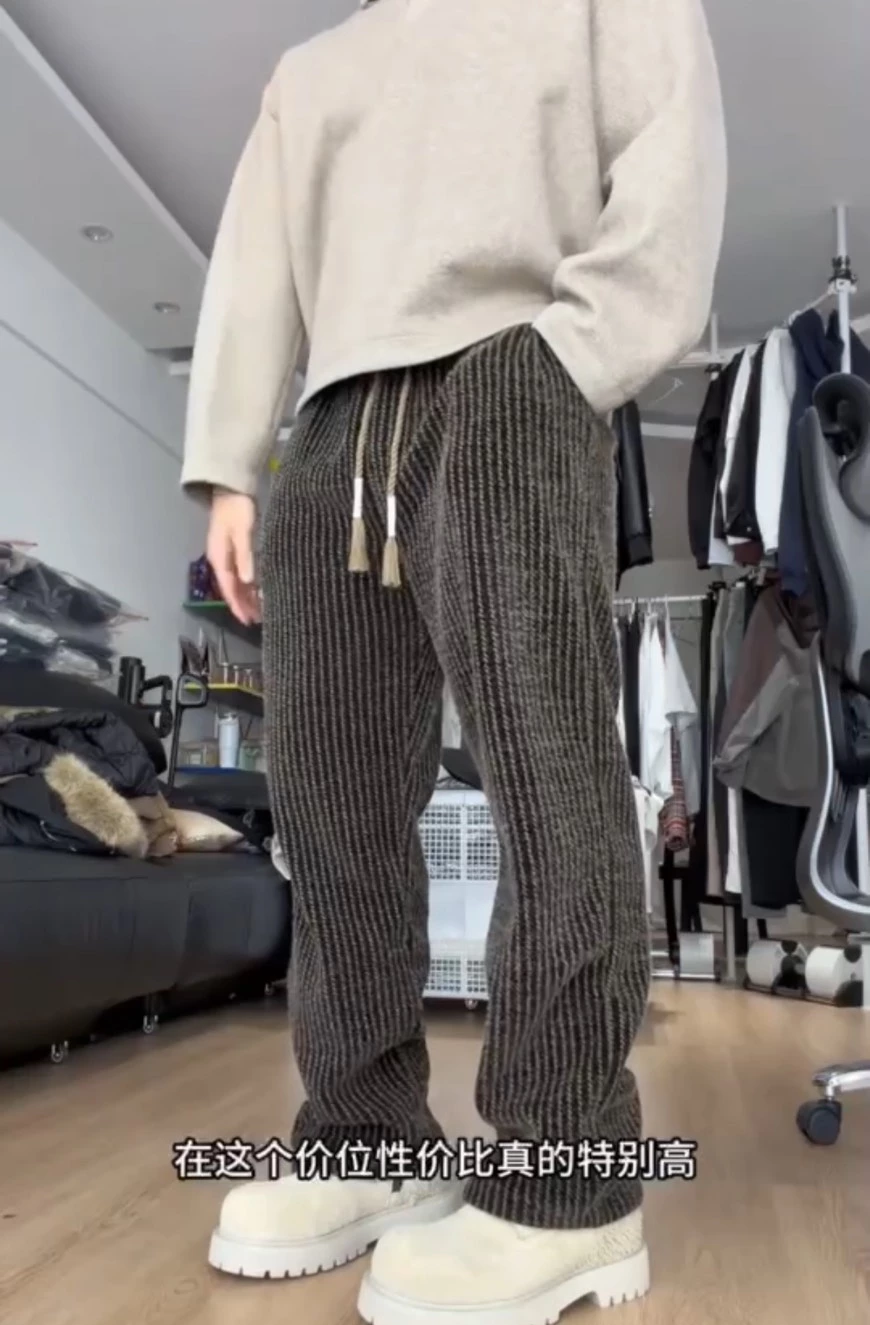 📍條紋燈芯絨拖地直筒闊腿褲