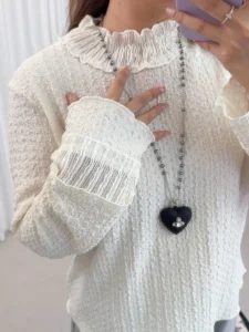 📍木耳邊半高領長袖上衣