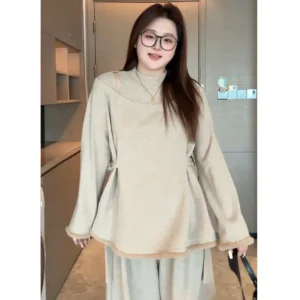 半高領針織露肩打底衫
